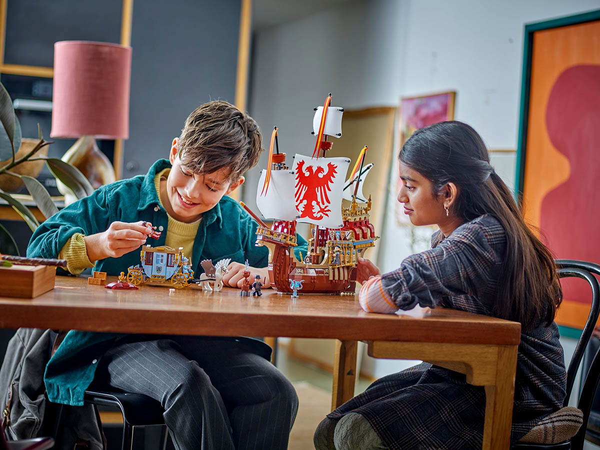 Das Set enthält detailgetreue Nachbildungen des Durmstrang-Schiffs und der Beauxbatons-Kutsche. Auf dem Durmstrang-Schiff findest du einen Wohnbereich und Schlafkojen für die Minifiguren, während die „fliegende“ Kutsche, die von einem prächtigen Abraxaner gezogen wird, Platz für zwei Minifiguren bietet und eine Truhe am Heck enthält.